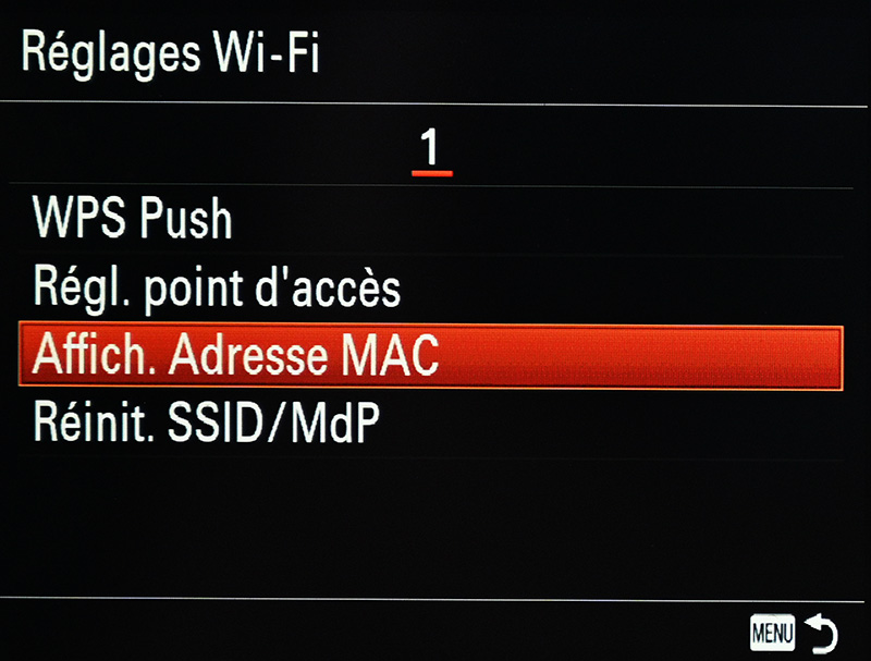 Affiche l’adresse MAC de votre Sony ILCE-7rm3.