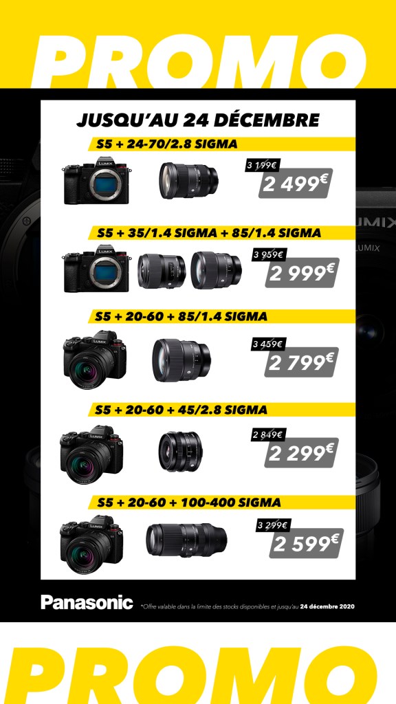 En ce positionnant sous la barre des 2000 euros, le Panasonic S5 affiche clairement sa volonté de « ratisser » des clients chez les marques concurrentes. Ajoutez à cela les promotions de cette fin d’année (voir illustration ci-dessous) et vous comprendrez que la pêche aux clients n’a pas de frontières.